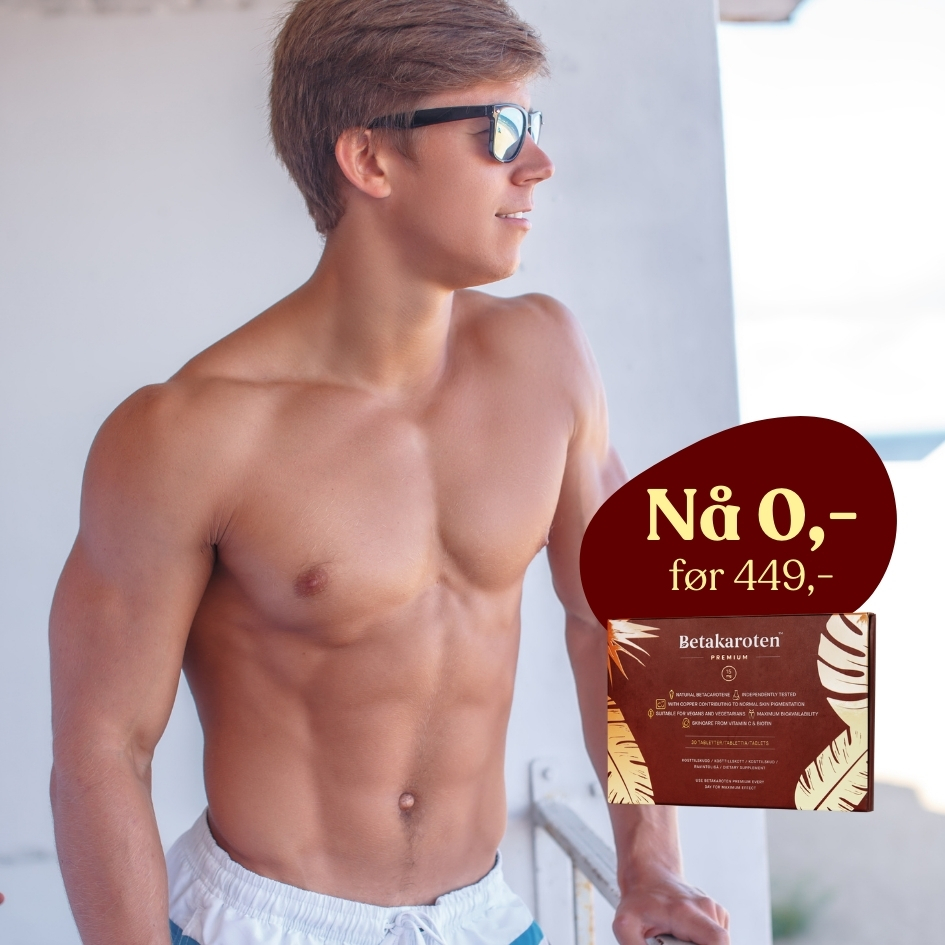 En varm, solkysset tone til jul – prøv Betakaroten Premium gratis – betal kun frakt. Perfekt for deg som vil slippe vinterblek hud i desember.